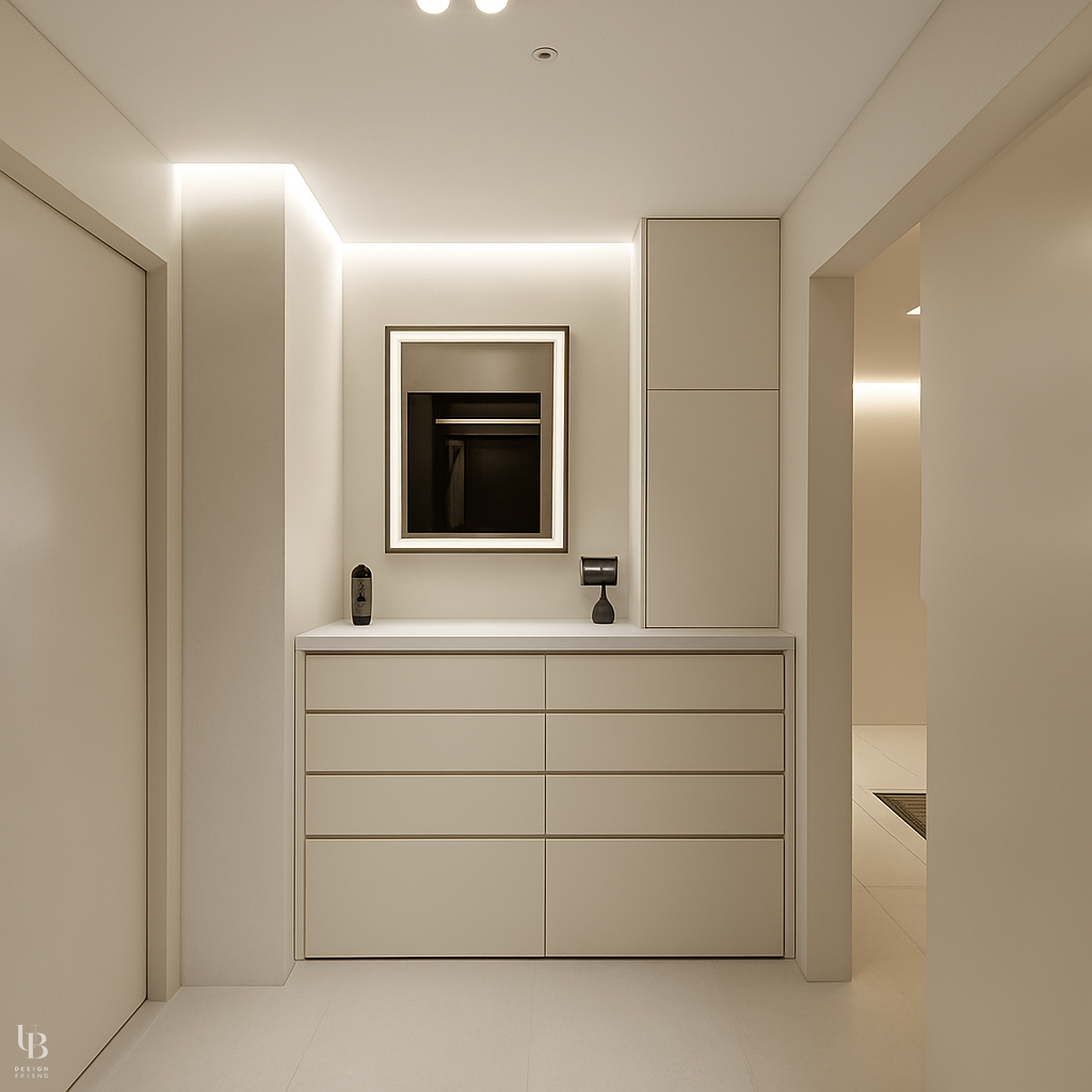 이번 프로젝트는 단순한 주거 공간을 넘어, 사용자의 성격과 내면을 자연스럽게 드러내는 무대로 디자인했습니다. 집 전체는 차분한 베이지 톤으로 정돈하고, 욕실에서 전체 톤과 대비되는 노란색으로 포인트를 주었습니다. 이는 누구나 내면에 지니고 있는 숨겨진 귀여움과 밝은 에너지를 표현한 요소로, 가장 사적인 공간에서 오히려 가장 솔직하고 즐거운 감정을 드러낼 수 있도록 의도한 디자인입니다.