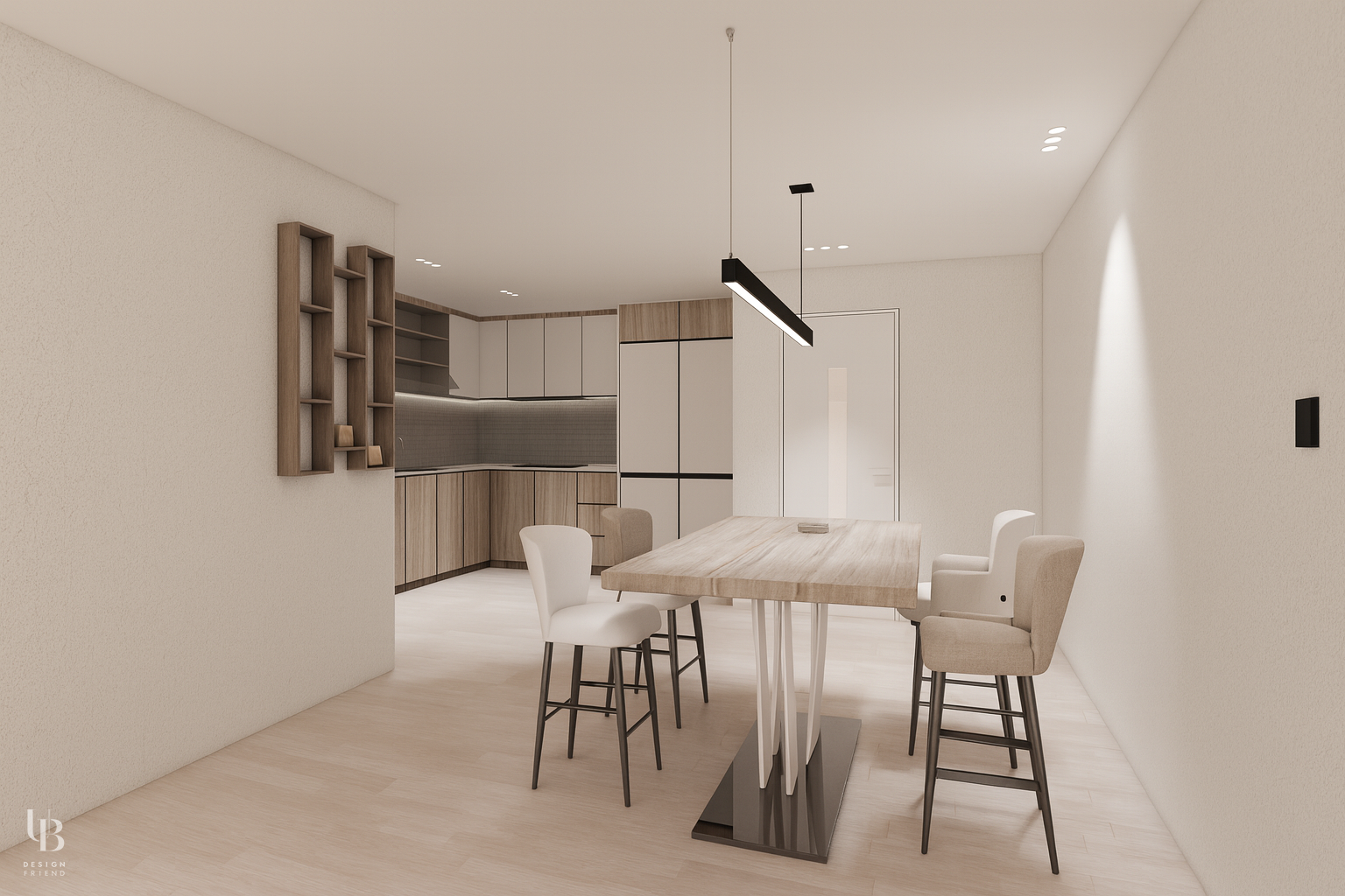 이번 프로젝트는 인테리어 마감재에 힘을 쏟지 않고, 소비자의 취향에 따라 분위기를 만드실 수 있는 공간을 만들어봤습니다. 우드 마루에 화이트 톤의 벽체와 천정. 어쩌면 흔한 인테리어 디자인이라고 생각하실 수 있으실 텐데요. 같은 마감재여도 미세한 색상에 따라 공간의 분위기는 큰 차이를 블러 옵니다. 무채색 한 방울이 들어간 마감재는 어떤 가구를 가져다 놓아도 새로운 공간을 만들어 줍니다.