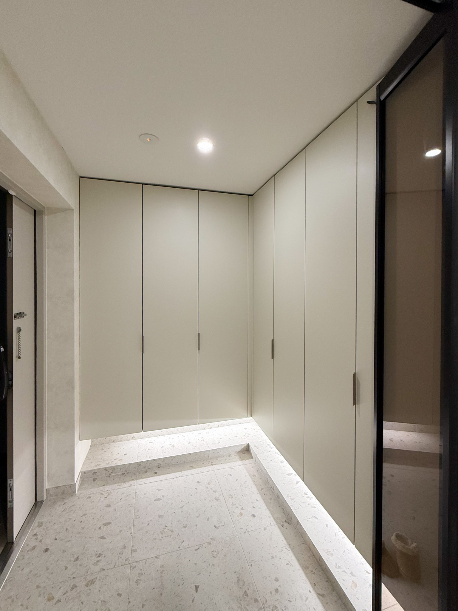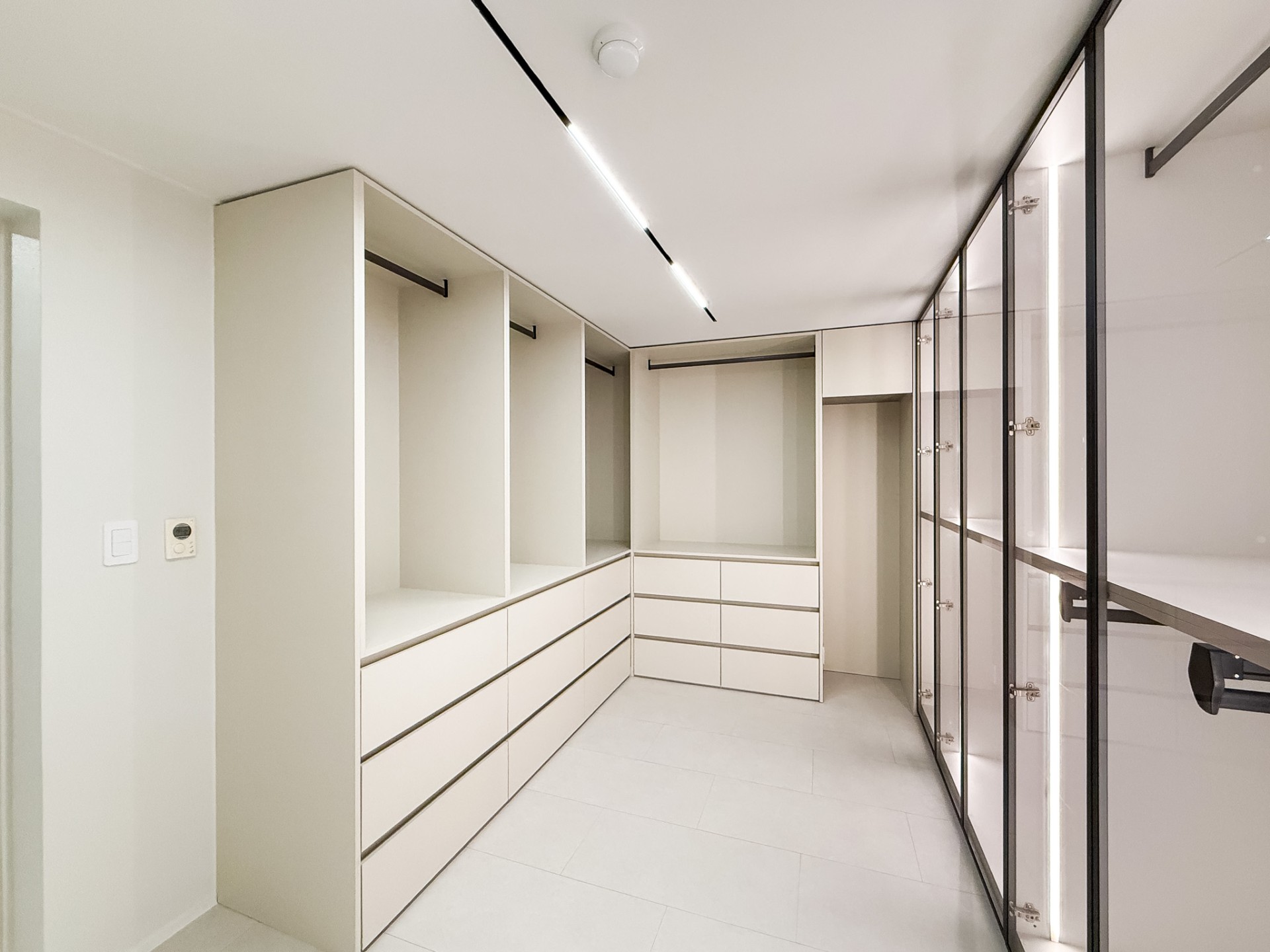 이번 프로젝트는 톤온톤 컬러와 미니멀한 라인감을 중심으로 완성된 모던 하이엔드 컨셉으로, 욕실, 주방, 그리고 드레스룸까지 모든 공간을 동일한 재질감과 은은한 조명으로 연결해 정돈된 분위기와 넓은 개방감을 극대화했습니다. 수납 디자인은 군더더기 없이 깔끔하게 구성해 실용성과 심미성을 동시에 확보했으며, 전반적으로 호텔 스위트룸같은 고급스러운 주거 감성을 담아냈습니다.