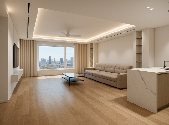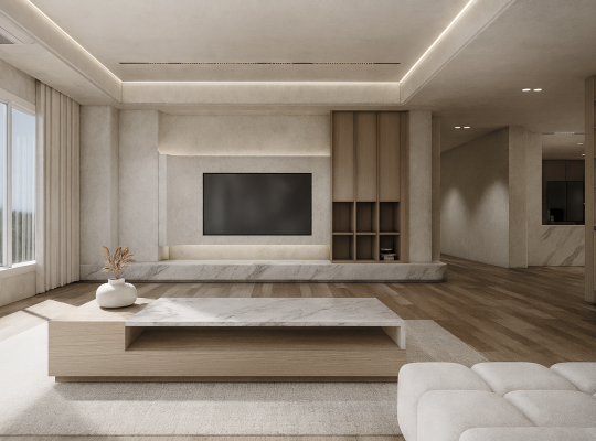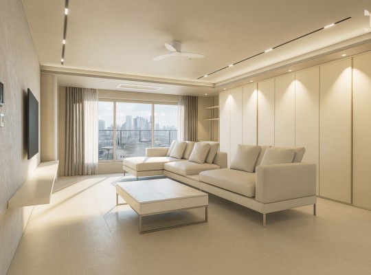 이번 프로젝트는 “단순함에서 비롯한 질서”라는 컨셉으로, 마감의 일관성을 통해 실생활에서의 편안함과 질서를 만들어내는데 집중하였습니다. 웜톤의 무채색 베이지 계열을 기반으로 바닥, 벽, 천장, 가구, 조명까지 일관된…