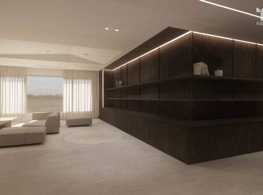 이번 프로젝트는 ‘견고함과 여백 사이’라는 컨셉으로, 공간 전반에 안정감과 절제된 고급스러움을 담아내는 데 집중하였습니다. 간결한 선과 고급스러운 디테일로 완성한 내부는 시각적인 정돈감과 함께 세련된 분위기를 전달합…