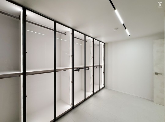 이번 프로젝트는 톤온톤 컬러와 미니멀한 라인감을 중심으로 완성된 모던 하이엔드 컨셉으로, 욕실, 주방, 그리고 드레스룸까지 모든 공간을 동일한 재질감과 은은한 조명으로 연결해 정돈된 분위기와 넓은 개방감을 극대화했습…